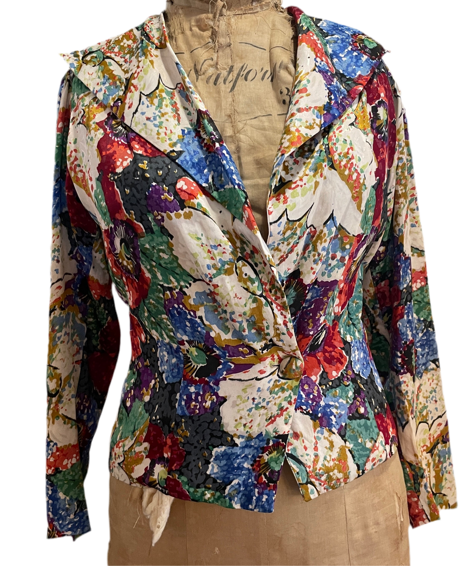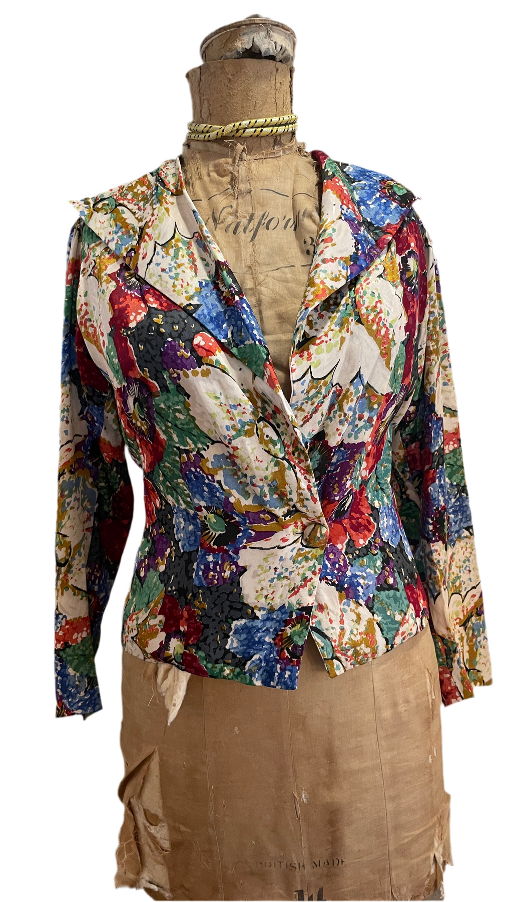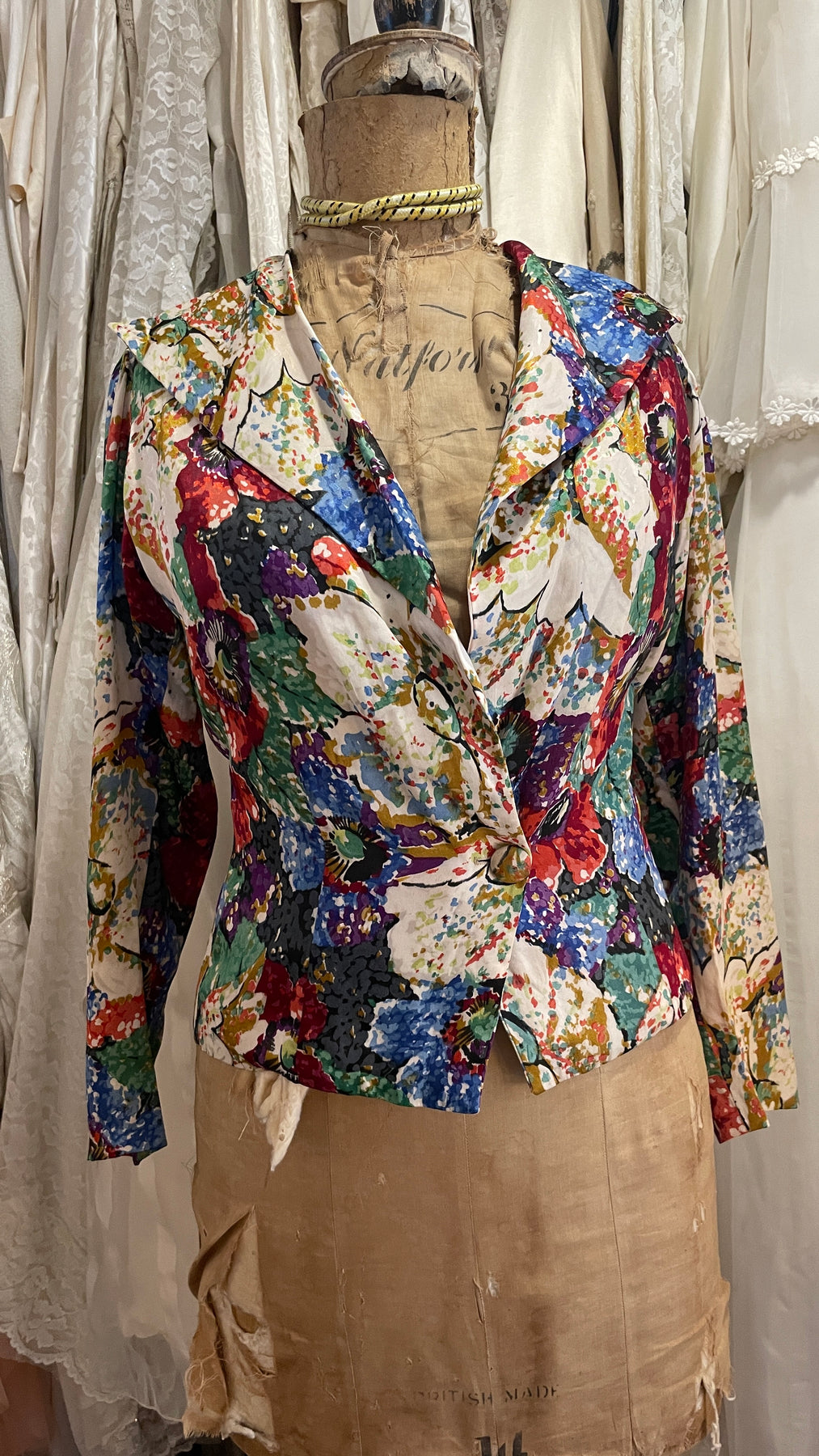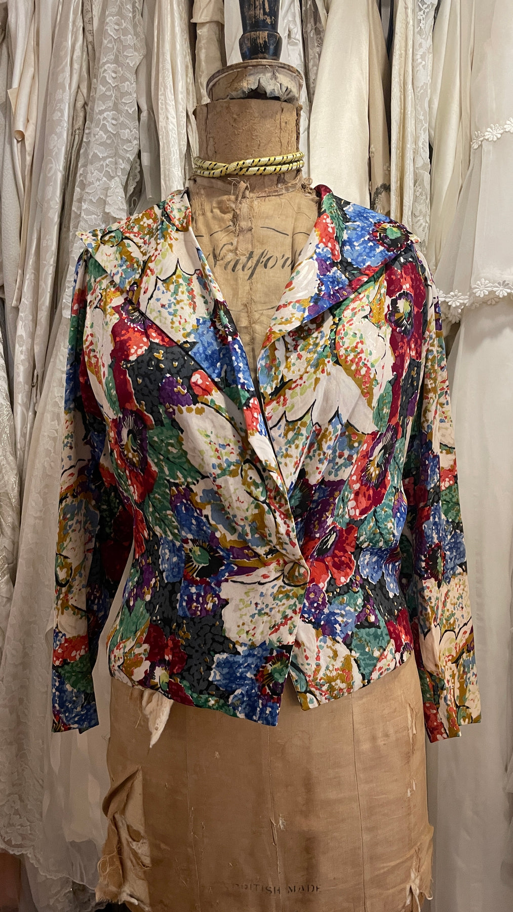 Regular price £150.00 Save £-150.001930's vintage floral print silk jacket, great condition.