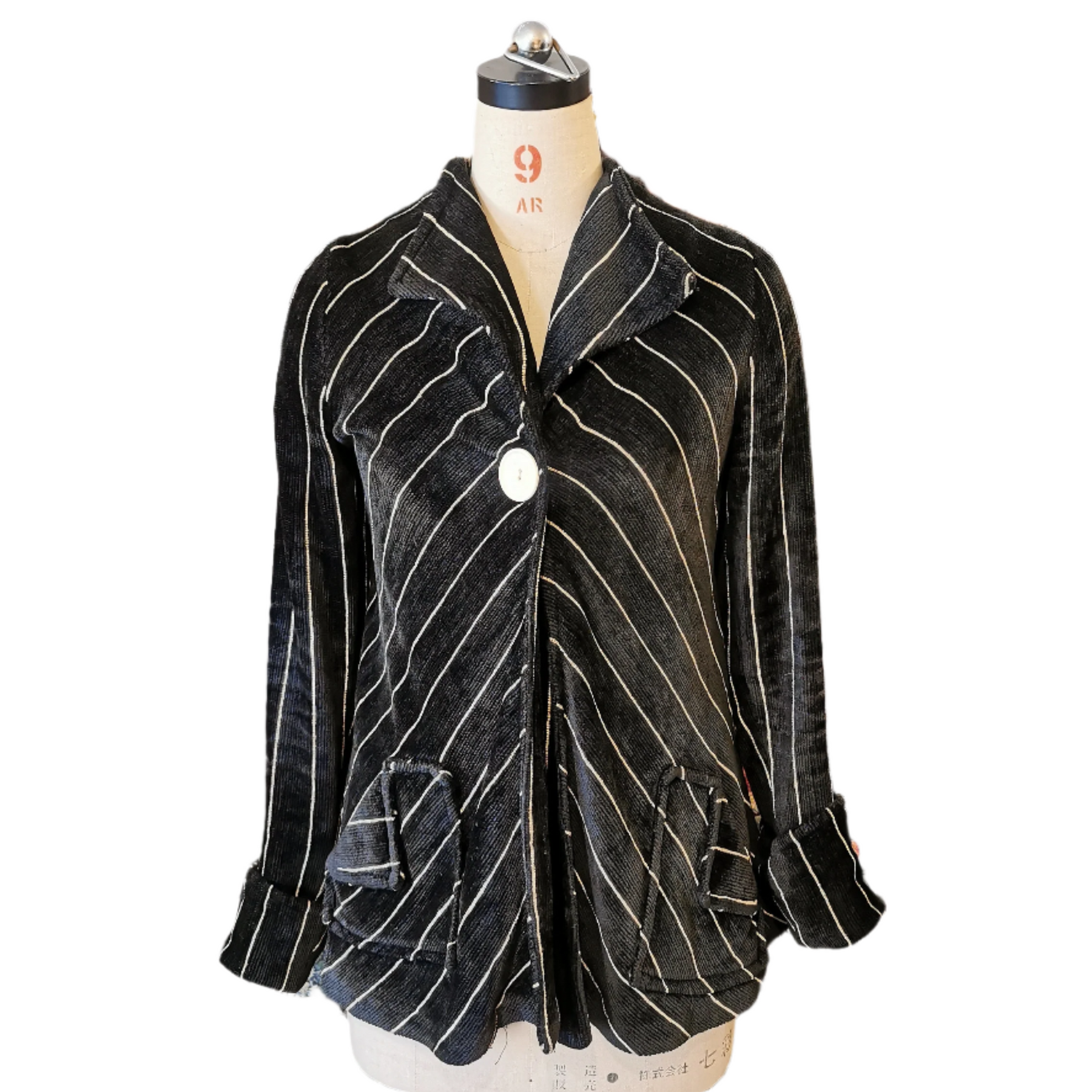Regular price £350.00 Save £-350.00Make a fashion statement with this rare and unique Miss Mouse pinstripe chenille swing jacket. Crafted with attention to detail featuring a polkadot lined cuff, this jacket exudes vintage charm and style. Whether you're dressing up for a special occasion or adding a retro touch to your everyday look, this jacket is sure to turn heads. Don't miss your chance to own this rare vintage piece that effortlessly blends classic design with contemporary fashion.