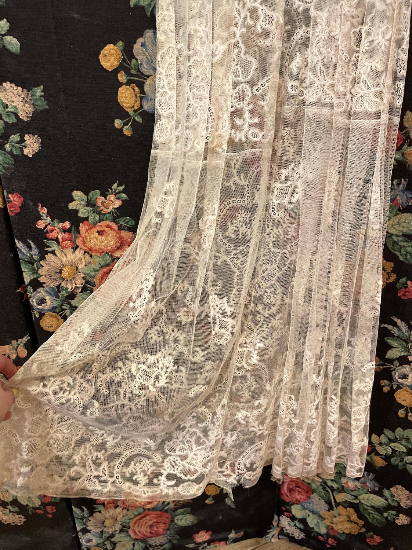 This antique piece is pure lace and so it is delicate. There are some marks/ discoloration and small holes, please see close up images. Overall these marks wouldn’t be so noticeable when worn especially on skin tones that aren’t too pale / with a tan. Any questions please get in touch.